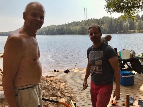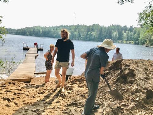 Talkoot pidettiin heinäkuussa ja taas kerran yhteisrantaa parantaen. Tällä kertaa suurinta roolia näytteli 50 tonnia hiekkaa, jonka avulla tehtiin rantaan hieno hiekkaranta alkaen asfalttitieltä asti. Väkeä oli paljon paikalla, tunnelma hyvä ja keli mitä mainioin. Ohessa tehtiin myös pieni kiinteä penkki terassille, sekä käsiteltiin laituri ruskealla öljyllä. Rannan suosio tuntui saaneen hyvää nostetta ehostuksen myötä. Ainakin pienille lapsille mukava parannus.