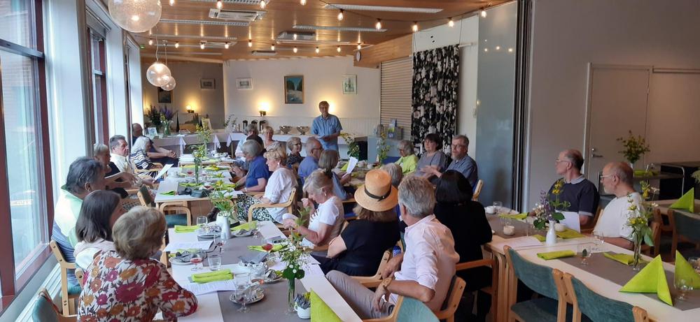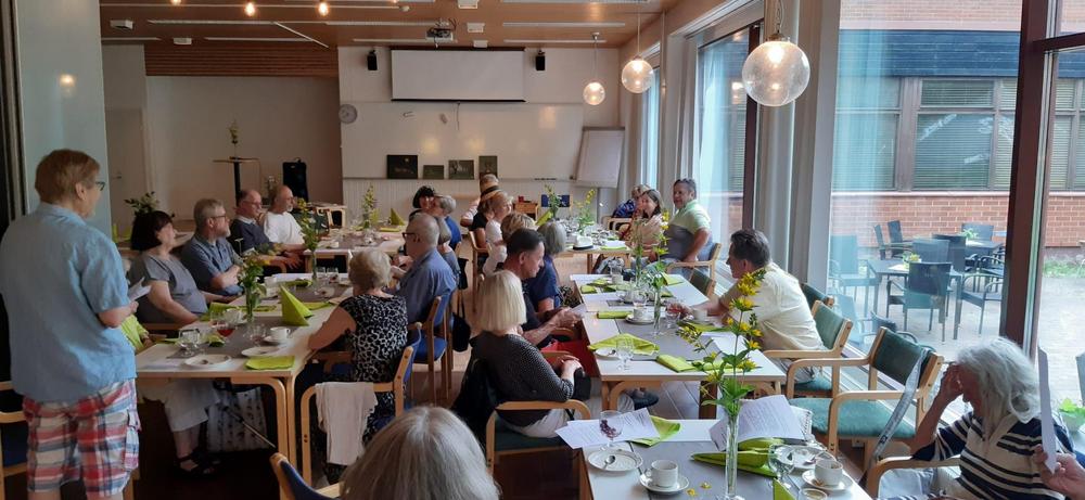 Yhdistyksen puheenjohtaja Aki Stenberg ei perheen sairauden vuoksi päässyt osallistumaan juhliin. Onneksi hän kuitenkin osallistui etäyhteydellä ennen juhlia olleeseen vuosikokoukseen. Juhlien järjestelyissä mukana olleet muut hallituksen jäsenet Martti Kerosuo, Sanna Saastamoinen-Barrois ja Sami Kejonen toivottivat runsaan 30-päisen vierasjoukon tervetulleeksi tilaisuuteen. Sanna ja Sami esittelivät samalla itsensä tuoreempina hallituksen toiminnassa olevina. Sanna toi maljatervehdyksessään kansainvälistä näkökulmaa alueemme ainutlaatuisuuteen. Kauan Ranskassa asuneena hän korosti alueen luonnonläheisyyttä ja rauhallisuutta vain 30 km päässä pääkaupungista.