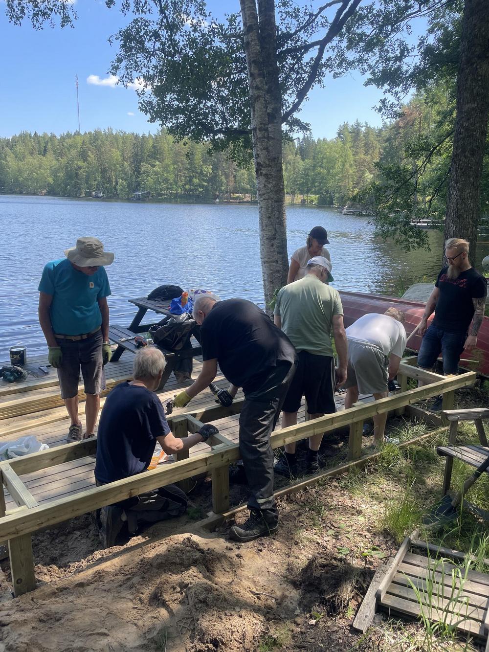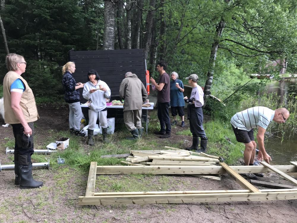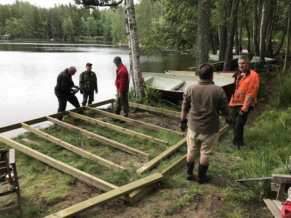 - Tehtiin kävelysilta laiturilta pukusuojalle, jotta pystyy kävelemään puhtain jaloin takaisin pukusuojaan.