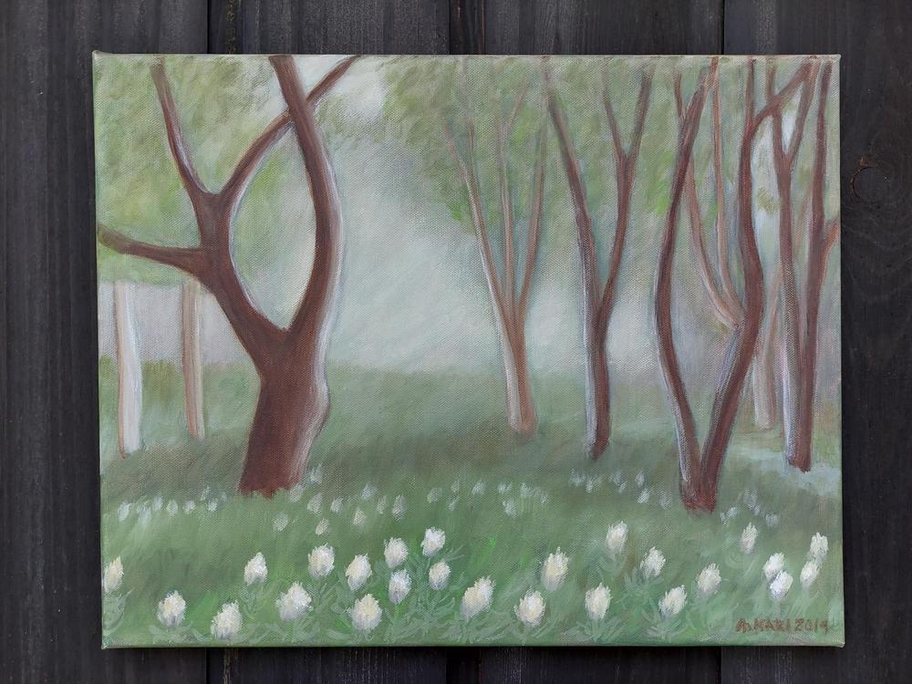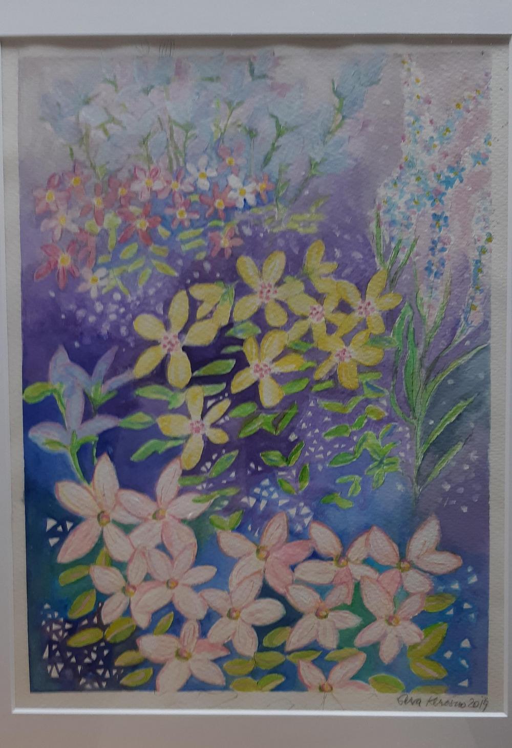 Eeva Kerosuo oli tuonut kukka-aiheisia akvarelleja. Lumpeita kuvaavat työt ovat saaneet innoituksensa Siikarannan lummelammesta. Anja Karin öljyvärityöt esittivät kettuja ja espanjalaista koiraa. Lopuksi Sanna esitteli omia töitään, jotka kuvasivat mm. Pikkaraisten luontoa eri vuodenaikoina.