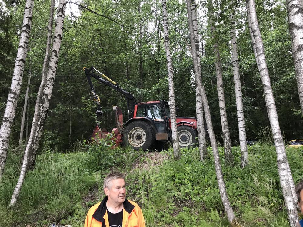 - Suuret oksajätteet aiempien vuosien talkoiden jäljiltä silputtiin traktorihakettimella.